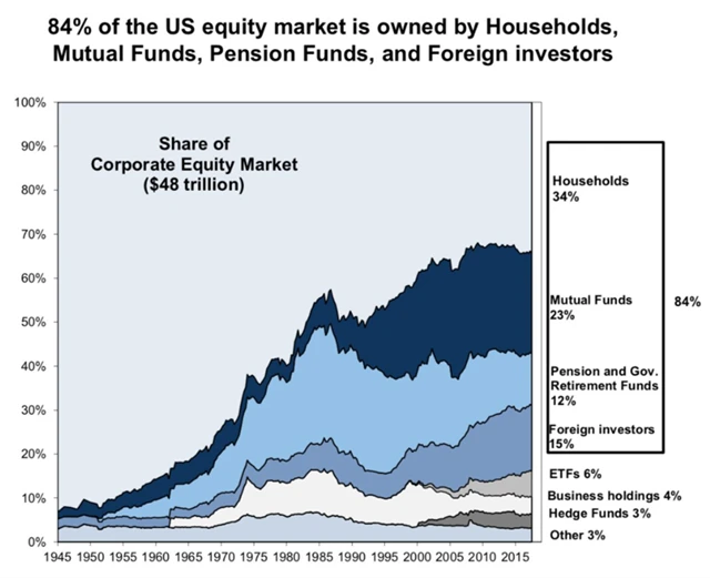 Přestože jsou soukromí investoři v současnosti jako skupina stále ve většině, portfolio vlastníků je mnohem diverzifikovanější, což vede k tomu, že činnost pouze jedné skupiny nemůže výrazně ovlivňovat dění na trzích.
