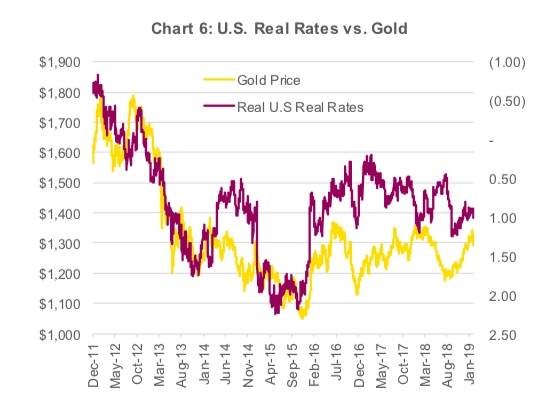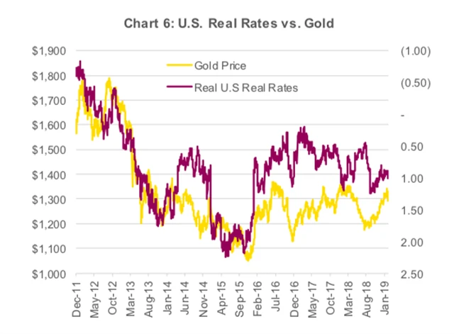 Jedním z nejdůležitějších faktorů ovlivňujících cenu zlata jsou reálné výnosy státních dluhopisů. Ty totiž zohledňují jak nominální sazby, tak inflaci. Zlato je pro investory zajímavější, když reálné sazby klesají, protože tím mizí nevýhody kovu, který negeneruje úrok. Sazby navíc klesají v dobách, kdy roste nejistota. Růst sazeb má na zlato negativní vliv, ale pokud poroste inflace (což není nereálné), tak i při rostoucích nominálních sazbách mohou ty reálné klesat.