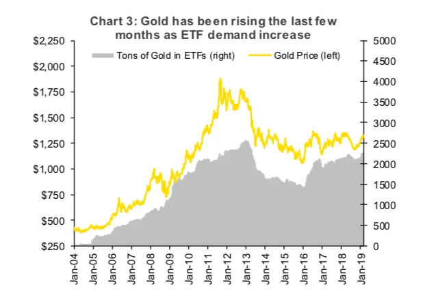 Za poslední čtyři měsíce se objem zlata v držení ETF zvýšil o 111 metrických tun. Investoři začínají mít obavy ze zpomalování ekonomiky a přestávají věřit v růst cen akcií, a tak hledají alternativy. A mezi nimi právě zlato, dlouhodobě považované za bezpečný přístav.