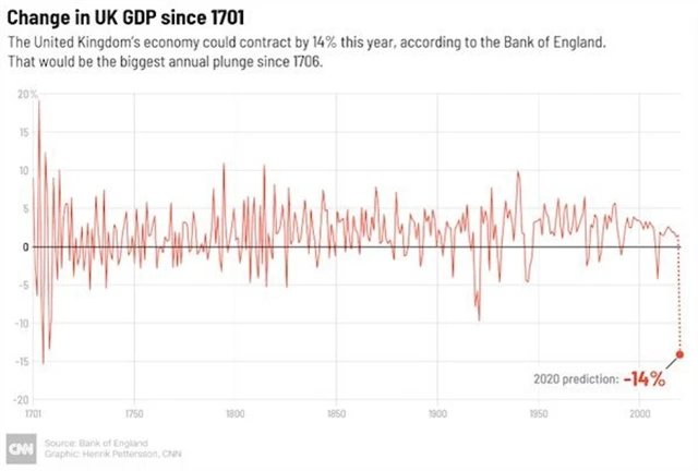 Na začátku května britská centrální banka varovala, že tamní ekonomika by se v letošním roce měla propadnout o 14 %. To by znamenalo nejhlubší propad od roku 1706, kdy se HDP meziročně snížil o 15 %. Obdobně zdrcující výhledy jsou i pro ekonomiky USA nebo eurozóny.