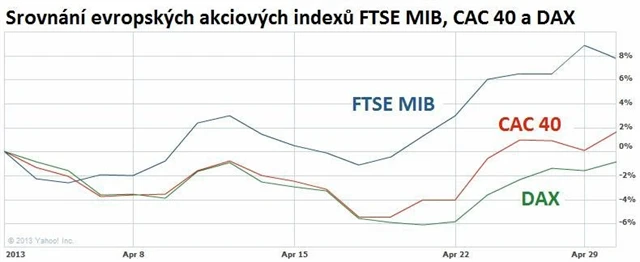V dubnu přidaly italské akcie v průměru kolem 8 %, zatímco německá a francouzská burza výrazně zaostaly. Ačkoli tak mnozí investoři začínají propadat euforii, je namístě stále velká obezřetnost. V současné situaci se totiž jen těžko odhaduje, zda bude podobný vývoj následovat i v příštích měsících. V krátkodobém horizontu sice v tomto ohledu nejsem přehnaně pozitivní, stále jsem však přesvědčen, že v rámci Evropy může italská burza patřit mezi ty lepší. Jiná je samozřejmě situace při srovnání Itálie s extrémně býčími Spojenými státy nebo Japonskem.