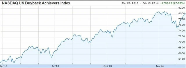 Apple není jedinou společností odkupující své akcie. Jak ukazuje složení NASDAQ US Buyback Achievers Index, takových korporací jsou na americkém trhu desítky. Uvedený index obsahuje pouze společnosti, které za posledních dvanáct měsíců odkoupily minimálně 5 % z celkového objemu vydaných akcií. Apple momentálně v indexu není, ale zdá se, že do něj má namířeno.