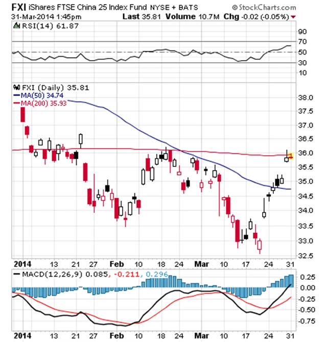 O Číně se píše hodně negativně. Především obavy o tempo ekonomického růstu a stínové bankovnictví vedly k velkému odlivu peněz z čínských akcií. Akcie z iShares China Large-Cap (FXI) od začátku roku klesly o více než 10 % až k minimu 13. března. Jde stále o ETF s jednou z nejhorších výkonností za první kvartál. Nicméně od minima se už stihly zotavit o 8 %.
