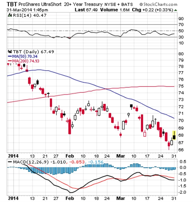 Nejlepší volbou je ProShares UltraShort 20+ Year Treasury. Je to ETF s dvojnásobnou pákou inverzně navázaný na denní vývoj Barclays U.S. 20+ Year Treasury Bond indexu (pokud spadnou ceny státních dluhopisů o 2 %, ETF poroste o 4 %). Je ale potřeba mít na paměti, že inverzní a pákové ETF nekopírují vývoj indexů zcela přesně. Navíc je nutné zahrnout náklady. Nemusí pak vyjít přesný poměr 2 ku 1.