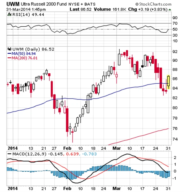 Oblíbený způsob, jak těžit z krátkodobého býčího trendu na trhu, je rychle rostoucí segment small caps. Zvolit lze například ETF navázaný na index Russell 2000. iShares Russell 2000 (IWM) je ETF, který kopíruje výkon tohoto indexu. Agresivnějším způsobem je ale páková verze ProShares Ultra Russell 2000 (UWM), který teoreticky umožňuje získat dvojnásobek výkonu indexu (pokud Russell 2000 vzroste o 5 % během druhého čtvrtletí, výnos dosáhne 10 %).