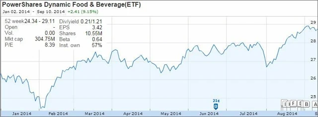 Kdo uvažuje o investici do akcií amerických firem zabývajících se výrobou potravin a nápojů, může zvolit například ETF PowerShares Dynamic Food & Beverage Portfolio (PBJ). Portfolio fondu je obvykle složeno alespoň z 30 kmenových akcií amerických potravinářských a nápojových firem. Portfolio se vyznačuje kvalitní diverzifikací, zastoupeny jsou firmy s různou tržní kapitalizací. Mezi známé společnosti v portfoliu patří například Starbucks, PepsiCo, Mead Johnson Nutrition Company, Yum! Brands a McDonald's.
