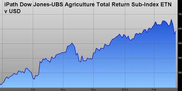 iPath Dow Jones-UBS Agriculture Total Return Sub-Index ETN by měl odrážet potenciální výnosy z nezapákovaných investic ve futures kontraktech, jež jsou součástí indexu. V indexu je aktuálně zahrnuto 7 futures kontraktů na zemědělské komodity obchodované na amerických burzách. Index by tak měl vytěžit z rostoucích cen obilovin.