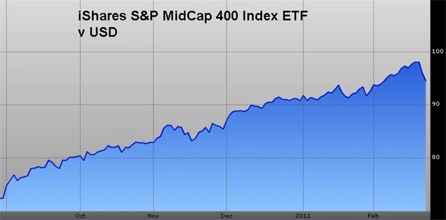 iShares S&P MidCap 400 Index ETF všeobecně koresponduje (po úpravě o poplatky) s cenou a výnosností S&P MidCap 400 Index. Je doporučován již od července 2009, kdy došlo k proražení hranice na úrovni 75 až 78 USD.