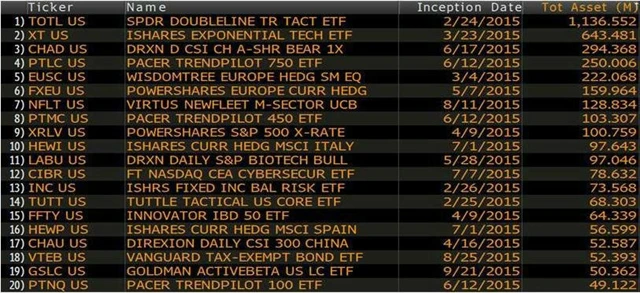 To platí i pro nejúspěšnější letošní novinku, SPDR DoubleLine Total Return Tactical ETF, aktivně spravovaný dluhopisový fond, který se snaží dosahovat maximálního výnosu investováním do dluhopisů v investičním stupni (rating BBB- a lepší) obchodovaných v USA. Fond je veden pod dohledem investičního gurua Jeffreyho Gundlacha, přičemž právě jména jako Gundlach nebo Bill Gross jsou tahákem a mohou pomoci novému produktu v boji s konkurencí o přízeň investorů.