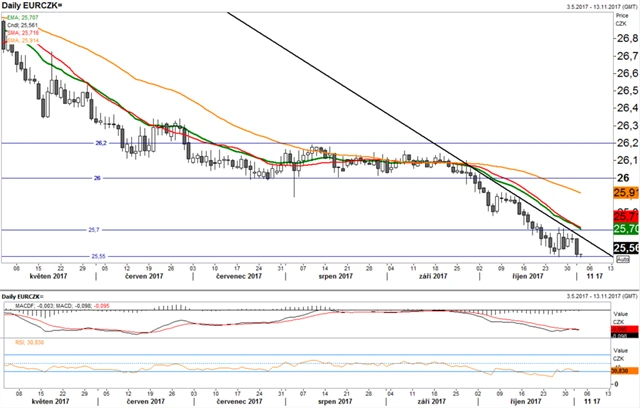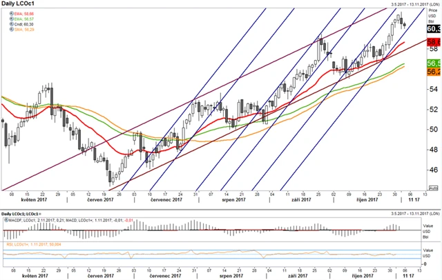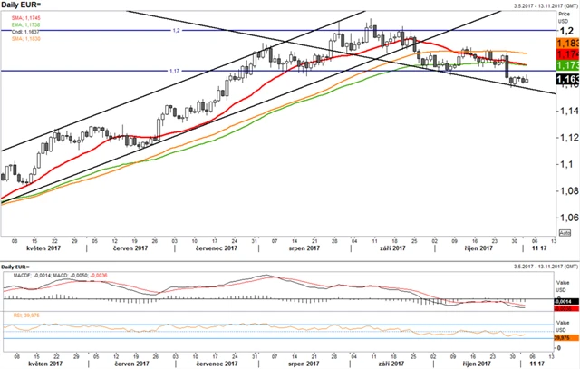 EUR/USD, ropa, zlato a EUR/CZK: Co naznačuje technická analýza (6. 11. 2017)