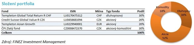 Nyní zbývá vybrat konkrétní fondy. Portfolio pak může vypadat například následovně: