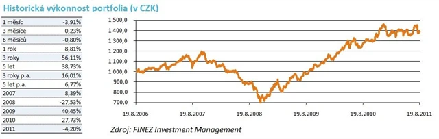 Všechny tři zahraniční fondy mají nejvyšší pětihvězdičkový rating od Morningstar. Celé portfolio má velmi dobrou historickou výkonnost, na pětiletém horizontu 6,77 % p.a. (po přepočtu do korun). Od začátku roku je v mínusu pouhých -4,2 %, zatímco akcie na Pražské burze ztratily 20 % a index S&P 500 necelých 10 %.
