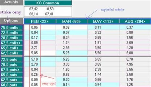 Opce jsou kótovány do expiračních měsíců a strike cen.