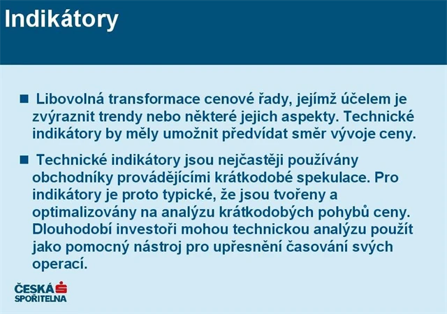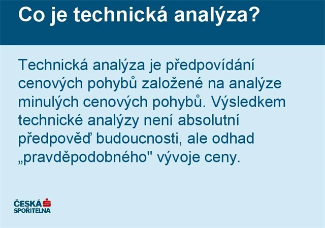 Technická analýza je předpovídání cenových pohybů založené na vyhodnocení předchozích cenových pohybů. Seznamte se se základními termíny a postupy technické analýzy v přehledné prezentaci.
