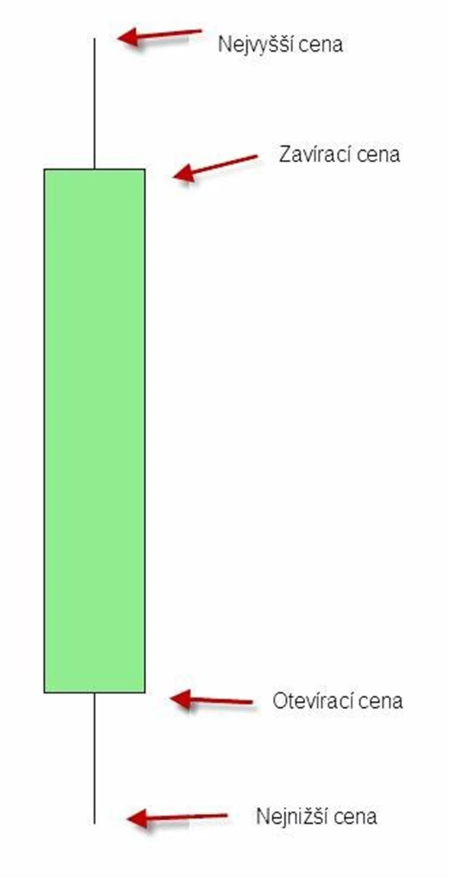 Svíčka, která je již vytvořena, poskytuje cenné informace o vývoji ceny v námi zvoleném časovém rámci. U každé svíčky můžeme identifikovat následující klíčové ceny: