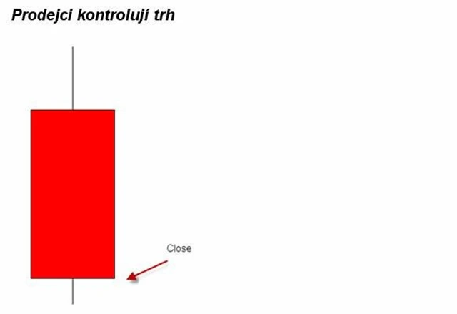 1. Zavírací cena (close) je poblíž low dané svíčky a daleko od otevírací ceny. V tomto případě je zřejmé, že jsou prodejci silnější stranou a kontrolují trh. Trh otevřel na vyšší ceně a během zvoleného časového úseku cena klesala, protože byla nízká poptávka po daném podkladovém aktivu.