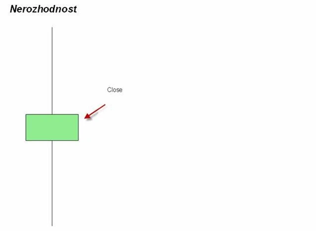 3. Zavírací cena je na stejné nebo velmi podobné úrovni jako otevírací cena. Takový obrázek znamená, že jak nakupující, tak prodávající mají přibližně stejnou sílu. Může to také značit nerozhodnost obou stran aukčního procesu nebo vyčkávání. Takový obrázek většinou nastává před zveřejněním významných ekonomických dat nebo po výraznějším pohybu ceny, po kterém účastníci trhu přehodnocují pozice a čekají na nové informace.