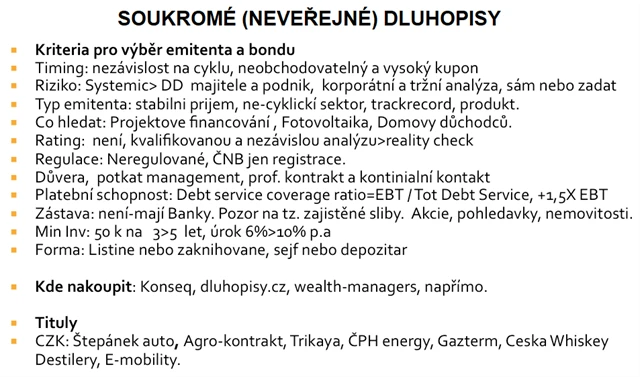 Vzhledem ke stávající míře zadlužení a nemožnosti drobných investorů si vybírat (pořizují si balíčky dluhopisů) někteří experti doporučují nákup mimo organizované trhy. Plusy a mínusy shrnul Tomas Michálek ze společnosti BondSupermarket.