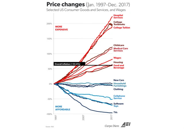 Problém inflace spočívá v tom, že se růst cen netýká všech výrobků a služeb stejnou měrou. Inflace zkrátka nepůsobí (jen) tam, kde by se to z makroekonomického hlediska (ale vlastně i z hlediska jednotlivce) hodilo.