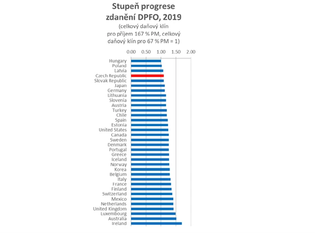 Co se týče samotného zdanění příjmů, ČR patří v rámci OECD k zemím s nejmenší progresí.