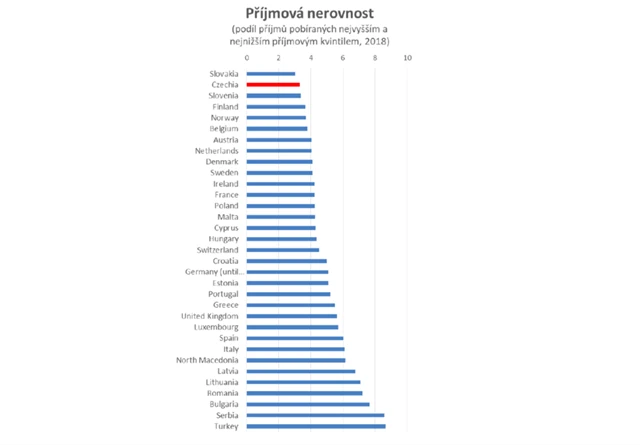 Mohlo by se tedy zdát, že tlak na vyšší progresi je namístě, protože ČR je v tomto směru "pozadu". Jenže hlavním argumentem ve prospěch progresivního zdanění je snížení příjmové nerovnosti. A na tomto poli ČR vykazuje extrémně nízké hodnoty.