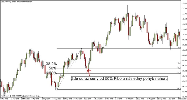 Za nejsilnější Fibonacciho hodnoty jsou považovány čísla 38.2%, 50% 61.8%.