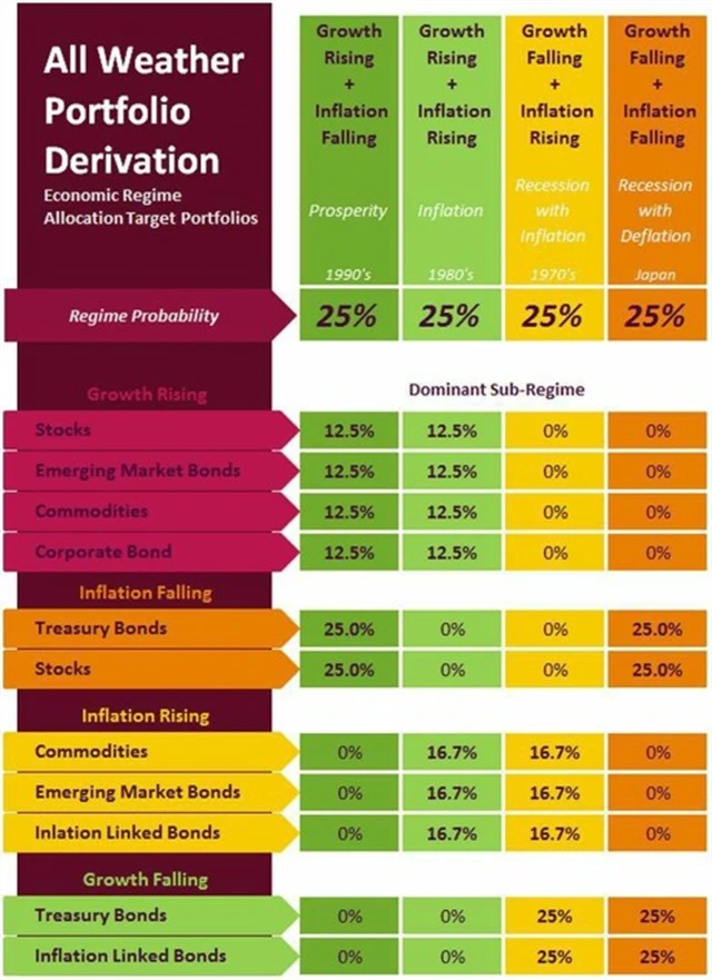 Zakladatel investiční společnosti Bridgewater Associates Raymond Dalio je často považován za nejlepšího manažera hedgeových fondů na světě. Touhou každého investora je pak při co nejmenším riziku vydělat co nejvíce, a to bez ohledu na to, jaké ekonomické prostředí zrovna převládá. Dalio takový recept našel, respektive sestavil portfolio, které bude v jakémkoli tržním prostředí stejně rizikové.
