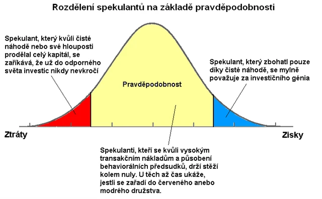 Obecně většina společenských jevů, včetně investování, sleduje tzv. normální pravděpodobnostní rozdělení, které nám říká, většina empirických pozorování zkoumaného jevu dopadne průměrně a že je jen malá pravděpodobnost extrémních výsledků, ať už negativních či pozitivních (viz. graf).