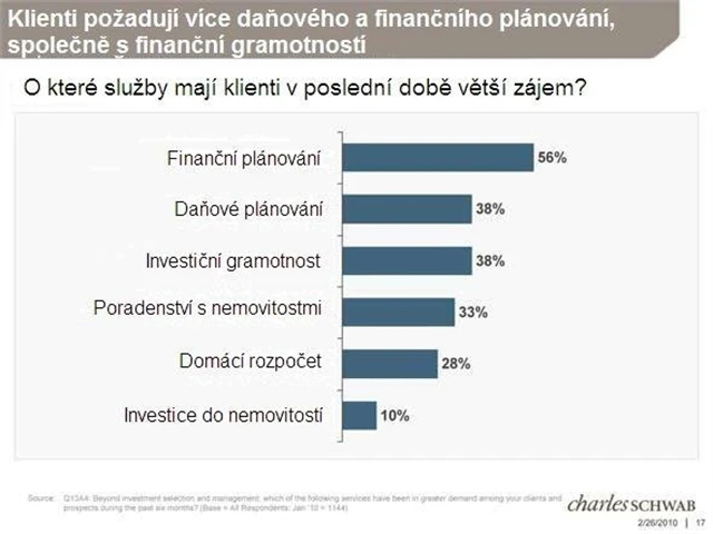 Charles Schwab publikoval svůj nedávný výzkum nezávislých investičních poradců. Výsledky naznačují stále konzervativnější přístup většiny klientů.