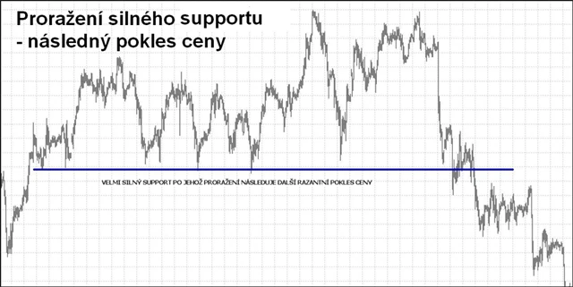 Velmi často se to děje na úrovních nějakých kulatých čísel. Čím více doteků ceny supportu proběhne, tím silnější bariéru tento support představuje. A samozřejmě také platí, že pokud trh prorazí velmi silný support, znamená to ve většině případů další výrazný pokles ceny sledovaného aktiva.