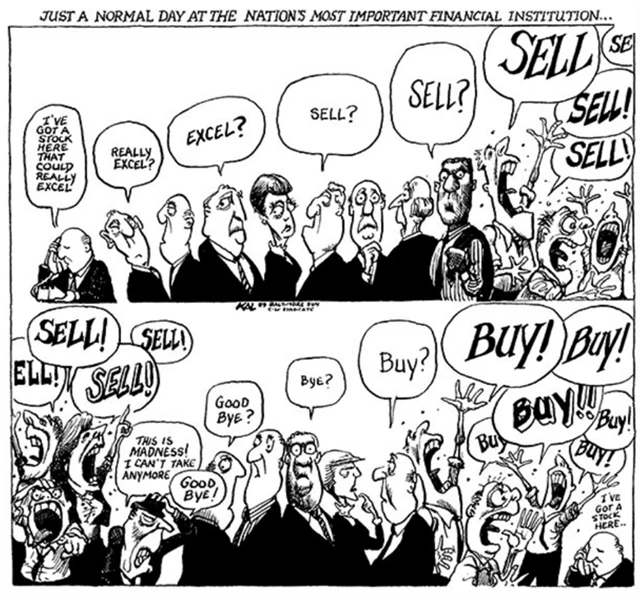 Trošku odlehčený pohled na panické nákupy a prodeje na burzovních trzích.