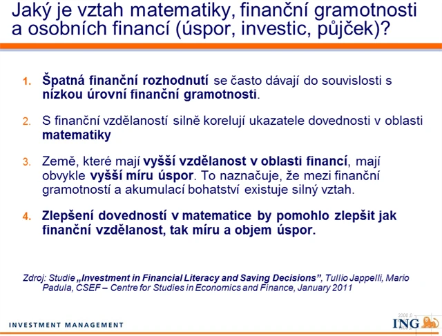 Matematika, finanční gramotnost a osobní finance souvisejí: