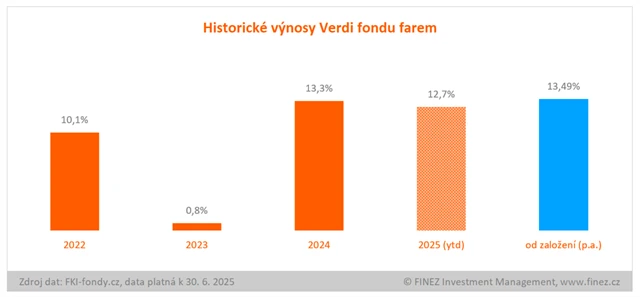 Verdi fond farem funguje od konce roku 2022. Za necelé tři roky přinesl investorům zhodnocení 42 % (13,5 % ročně). Dlouhodobě cílí na čisté zhodnocení na úrovni 10 % za rok.
