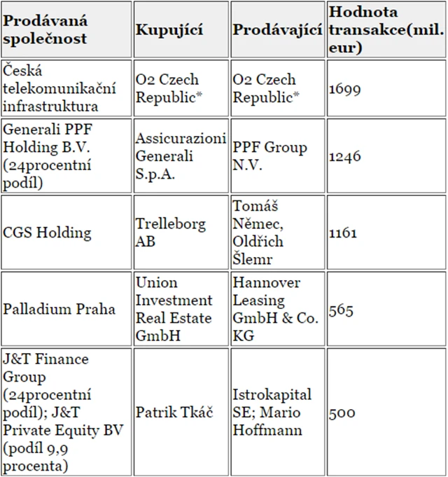 "Rok 2015 patřil k velmi úspěšným z pohledu transakční aktivity. Důvodem byla rostoucí ekonomika, ve které je velké množství investorů s volnými penězi, ale také stále nízké úrokové sazby umožňují investorům půjčovat si na akvizice velice levně," uvedl odborník na transakce ze společnosti PwC ČR Jan Hadrava.