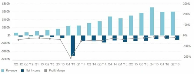 Na hospodářské výsledky není o mnoho hezčí pohled. Loni sice společnosti tržby vzrostly v meziročním srovnání z 1,4 miliardy dolarů na 2,22 miliardy dolarů, její čistá ztráta se ale snížila z 578 milionů dolarů jen na 521 milionů dolarů.