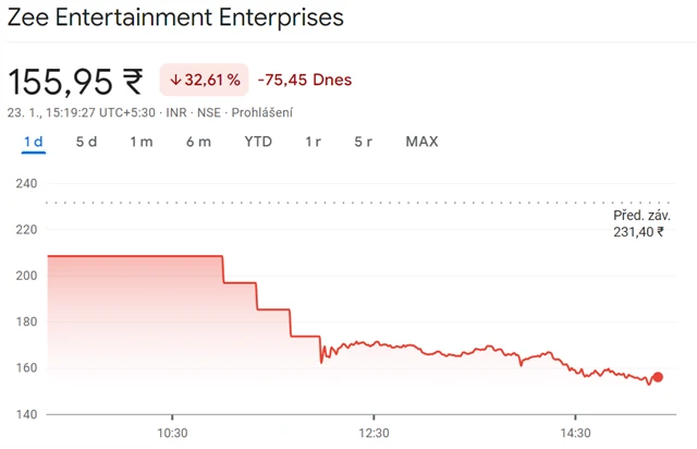 Akcie indické Zee Entertainment se po zrušení fúze se Sony propadly o 31 %