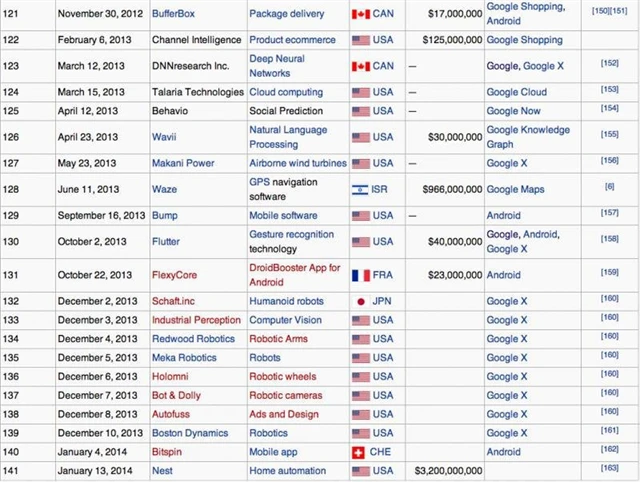 Google je největším internetovým vyhledávačem na světě, stále více však expanduje na nové trhy, od vysokorychlostního připojení k internetu přes mobilní elektroniku, sdílení videa po vývoj aut bez řidiče a robotů.