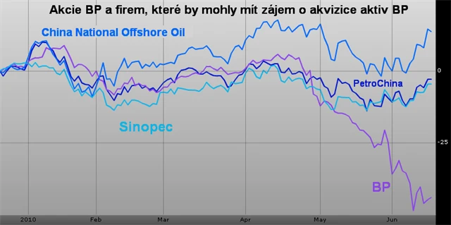 Kromě PetroChina tak je slyšet například o China National Offshore Oil a Sinopecu. Právě tyto firmy přitom podnikají v podobných oblastech světa jako BP a mohly by tak její aktiva "přilepit" ke svým stávajícím ropným polím.