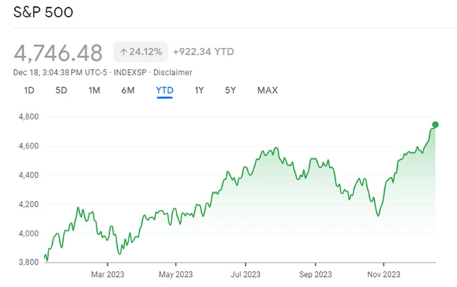 Optimismus není překvapivý vzhledem k růstu indexu o 8,9 % v listopadu a zatím 3,3 % v prosinci. Očekávání uvolnění měnové politiky Fedu byla velkým hnacím motorem těchto zisků, přičemž trh aktuálně v příštím roce očekává snížení úrokových sazeb o více než 150 bazických bodů.