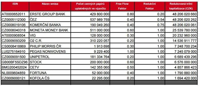 Prosincové převážení indexu PX zásadní změny nepřinese, free float faktor Monety zůstane 0,6