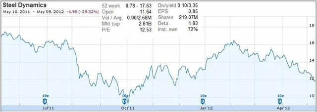 Od předního amerického výrobce oceli analytici očekávají, že letos vydělá 2,07 USD na akcii a EPS poroste 18% tempem na 2,45 USD v roce 2013. S&P projektuje 7% růst ve světové spotřebě oceli, což by se mělo promítnout do vyššího zisku společnosti.