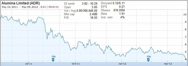Alumina vlastní 40% podíl ve společnosti Alcoa World Alumina and Chemicals (světově největší producent hliníku), která se zabývá i těžbou bauxitu a zpracováním hliníku.
