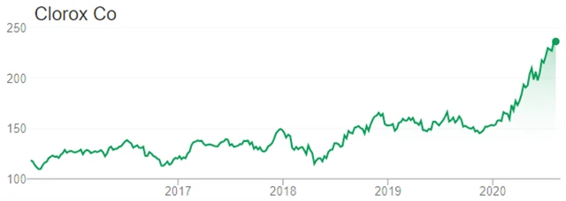 Politici se snaží otevírat ekonomiku (téměř) za každou cenu, lidi ale zajímá opětovné šíření nákazy. Výrobce dezinfekčních prostředků Clorox je již od února hodně žhavým zbožím. Poté, co se epidemiologická situace v květnu ustálila, sice její akcie zastavily růst, ale druhá vlna je pro Clorox vodou na mlýn.