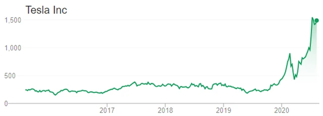 Extrémně "provařená" akcie, která ale do prostředí nového normálu výborně zapadá. Koronavirus ukázal, že tradiční paliva mohou být v době krizí až příliš "třaskavá", protože mohou mimo jiné vyvolávat cenové války. Ceny ropy se tak stávají více závislými na geopolitické situaci. Tesla z toho v posledních měsících dokáže dokonale těžit.