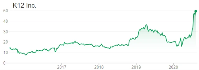 Nejen práce z domova, ale i učení z domova se může stát novým normálem. V USA tyto tendence kromě pandemie podporuje i rostoucí násilí na školách a jistý celkový morální úpadek a apatie mladých lidí. Firma K12 měla již před pandemií vytvořenou kompletní on-line infrastrukturu zaměřenou na komplexní vzdělávání doma. To vše stojí za tím, že akcie společnosti letos masivně zpevňují. Po případné korekci tedy může jít o zajímavý titul.