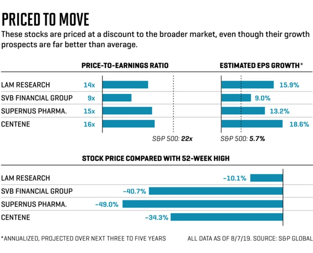 Hledání zajímavě oceněných titulů proto může vypadat jako hledání jehly v kupce sena. Magazín Fortune ovšem nedávno nabídl seznam sta nejrychleji rostoucích společností a našly se mezi nimi minimálně čtyři firmy, které vedle růstového příběhu a zajímavých očekávaných zisků splňují i podmínku atraktivního ocenění.
