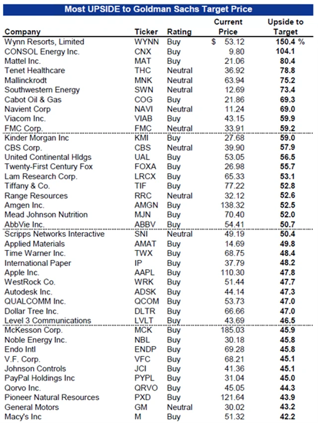 Goldman Sachs upozorňuje na 40 akcií, které mají vůči svým cílovým cenám největší růstový potenciál. Apple, General Motors nebo Tiffany se vešly na tento seznam.