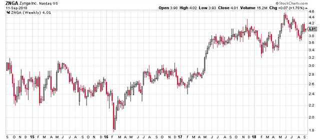 S cenou na 4 dolarech (maximum z června je 4,47 dolaru) a tržní kapitalizací 3,4 miliardy dolarů nemusí být společnost, která vyvíjí hry pro mobily a sociální sítě, pro investory zajímavá, natož při P/E bezmála 100 (na základě zisků za uplynulý rok).