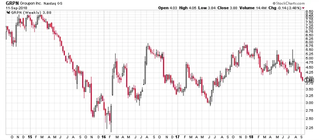 Groupon se loni dostal do mírného zisku, protože se mu navzdory poklesu tržeb daří zvyšovat marže. Analytici letos očekávají růst zisku na více než dvojnásobek a v roce 2019 o dalších 12,5 %, což znamená zajímavé forwardové P/E okolo 15. V příštím roce by mohlo dojít také k opětovnému růstu tržeb o 6,7 %. Pokud se firma vyvaruje zadlužování, bude se jí dařit zvyšovat tržby a udrží si vysoké marže, má šanci být opět zajímavým titulem.