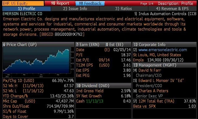 Po čtyři kvartály firma nezvýšila dividendu, to se ale změnilo po reportu posledních čtvrtletních výsledků, kdy ji zvedla z 41 centů na 43 centů. Emerson je citlivá na vývoj v cyklickém průmyslovém sektoru, což se zatím v letošním roce vyplácí díky kombinaci lepší ekonomické aktivity a nízkých úrokových sazeb.